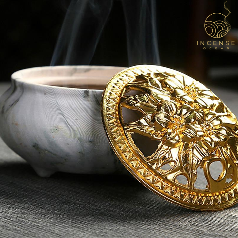 Marble Coil Censer Incense Burner Copper Cover Ceramic from incenseocean